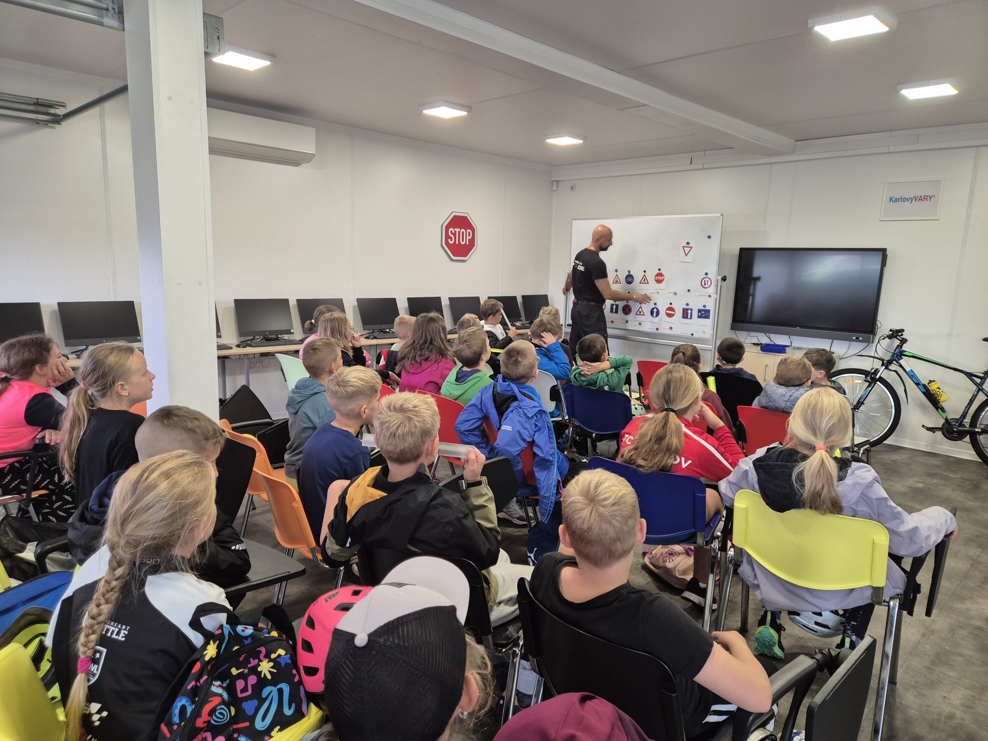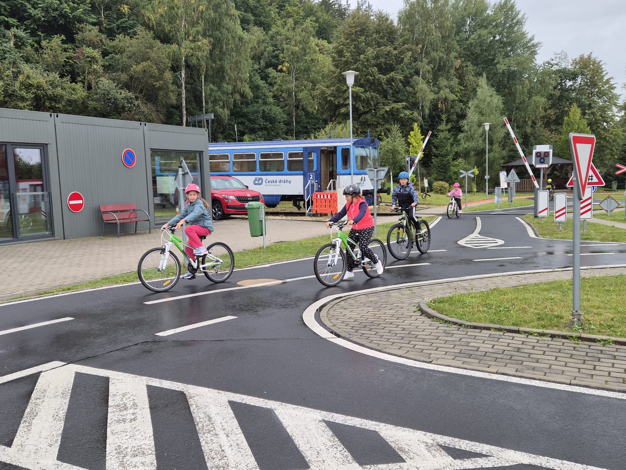 Žáci 4.A, 4.B a 4.C navštívili v září Centrum zdraví a bezpečí v Karlových Varech, kde se zúčastnili programu zaměřeného na dopravní výchovu. Učili se význam dopravních značek a pravidla bezpečného chování na silnici. Největším zážitkem pro ně byla praktická část na dopravním hřišti, kde si vyzkoušeli jízdu na kolech v modelovém provozu.