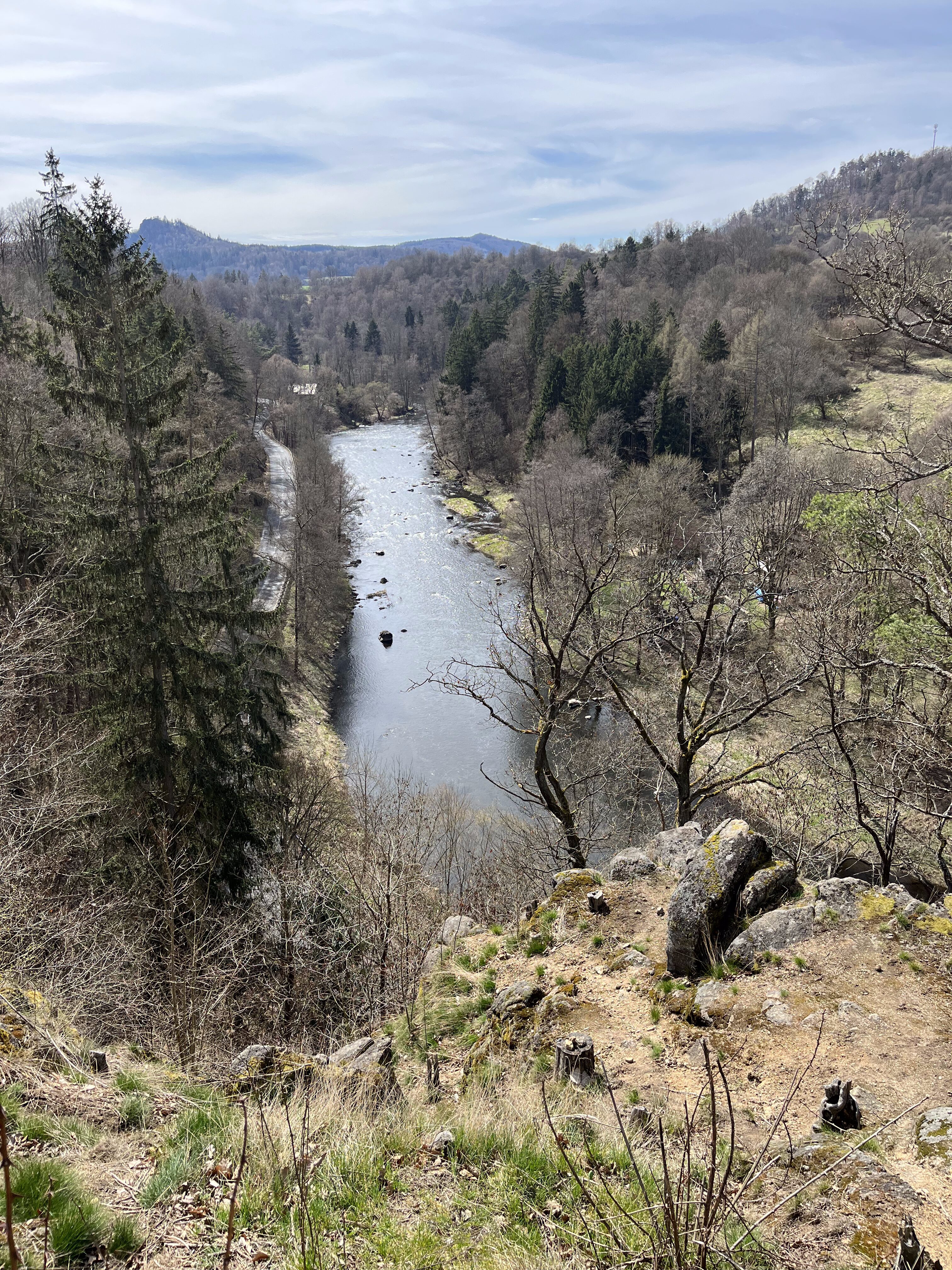 PS: … a protože i cesta je cíl, mohli jsme žasnout nad velkým kopcem v Moříčově, dřevěným mostem v Radošově a nádherným výhledem na řeku Ohři z vyhlídky sv. Václava a skalami všude kolem.