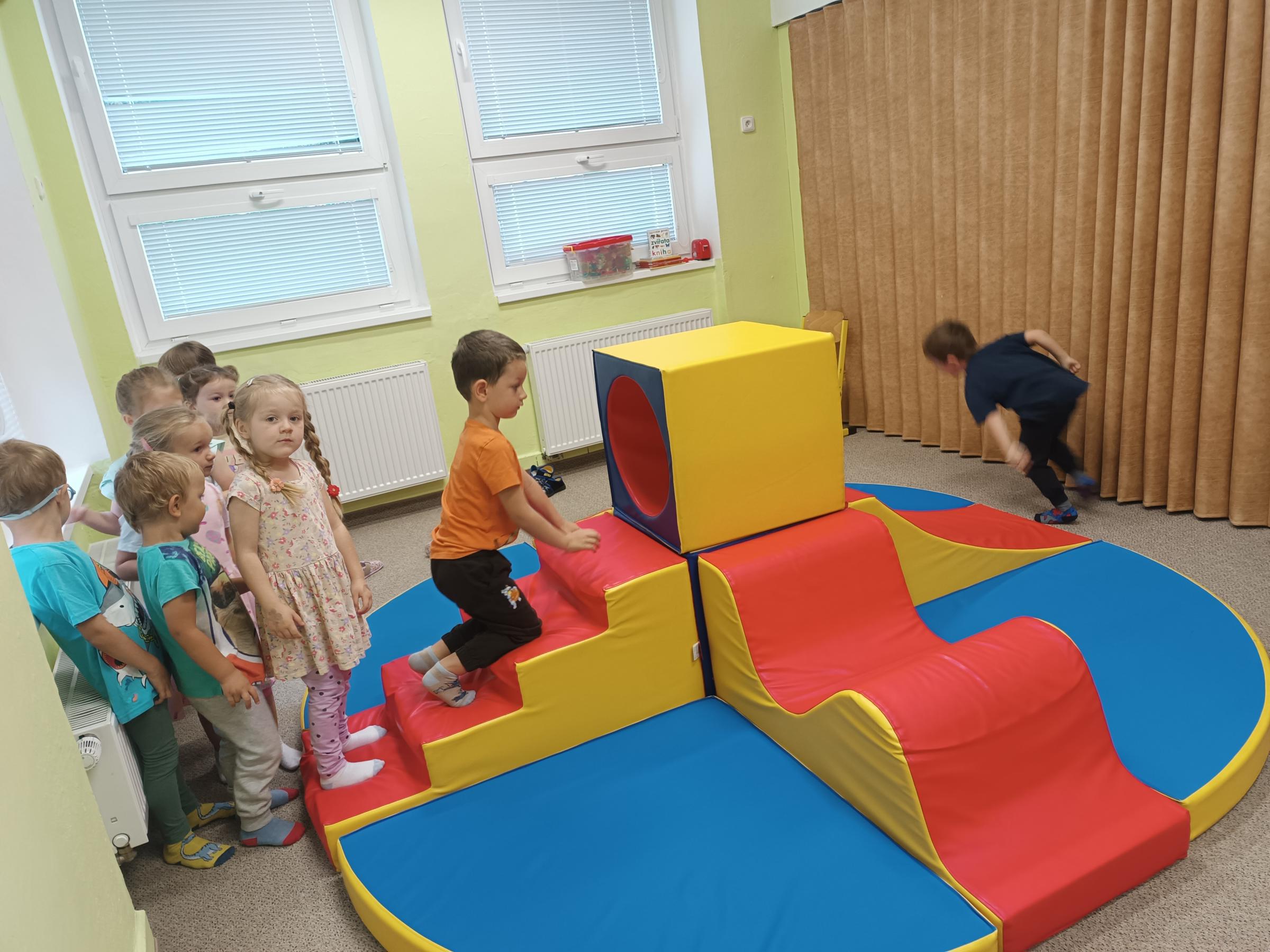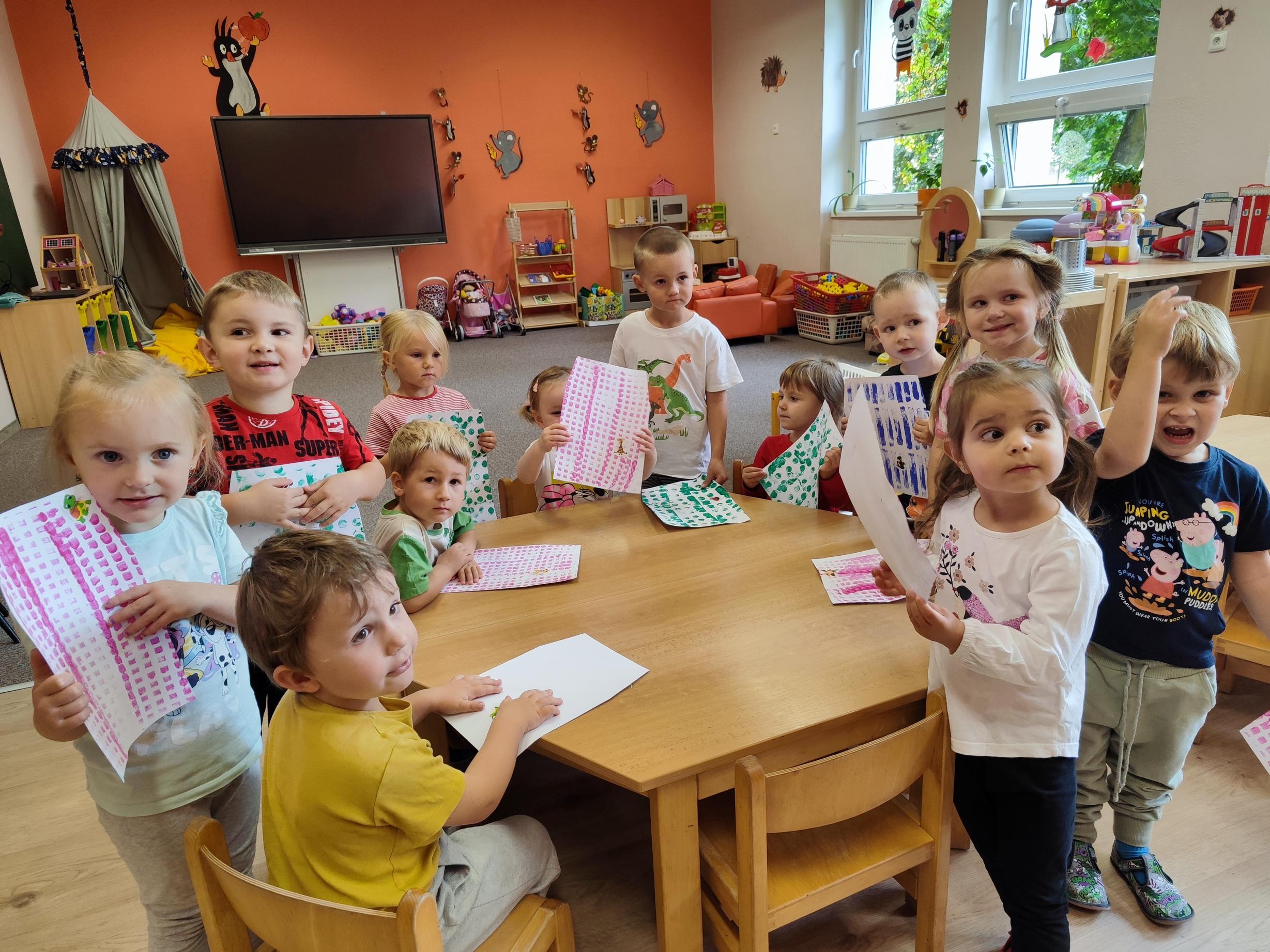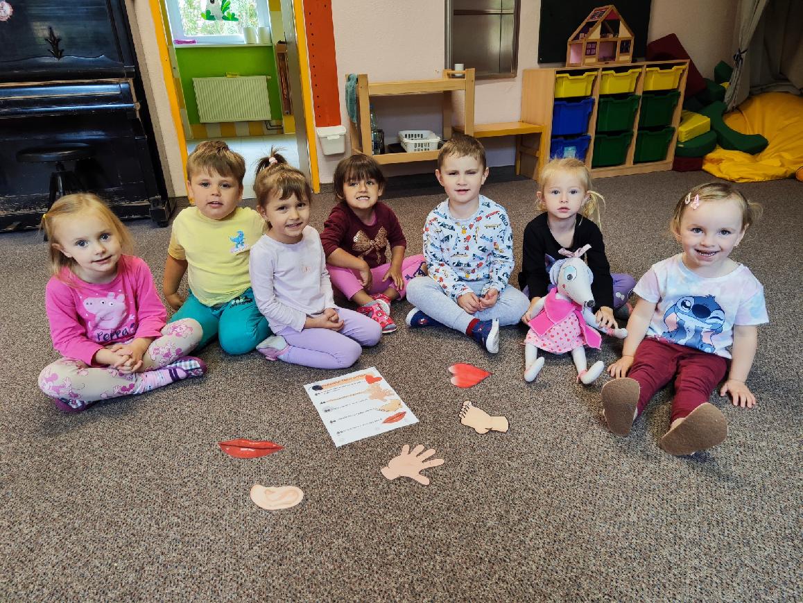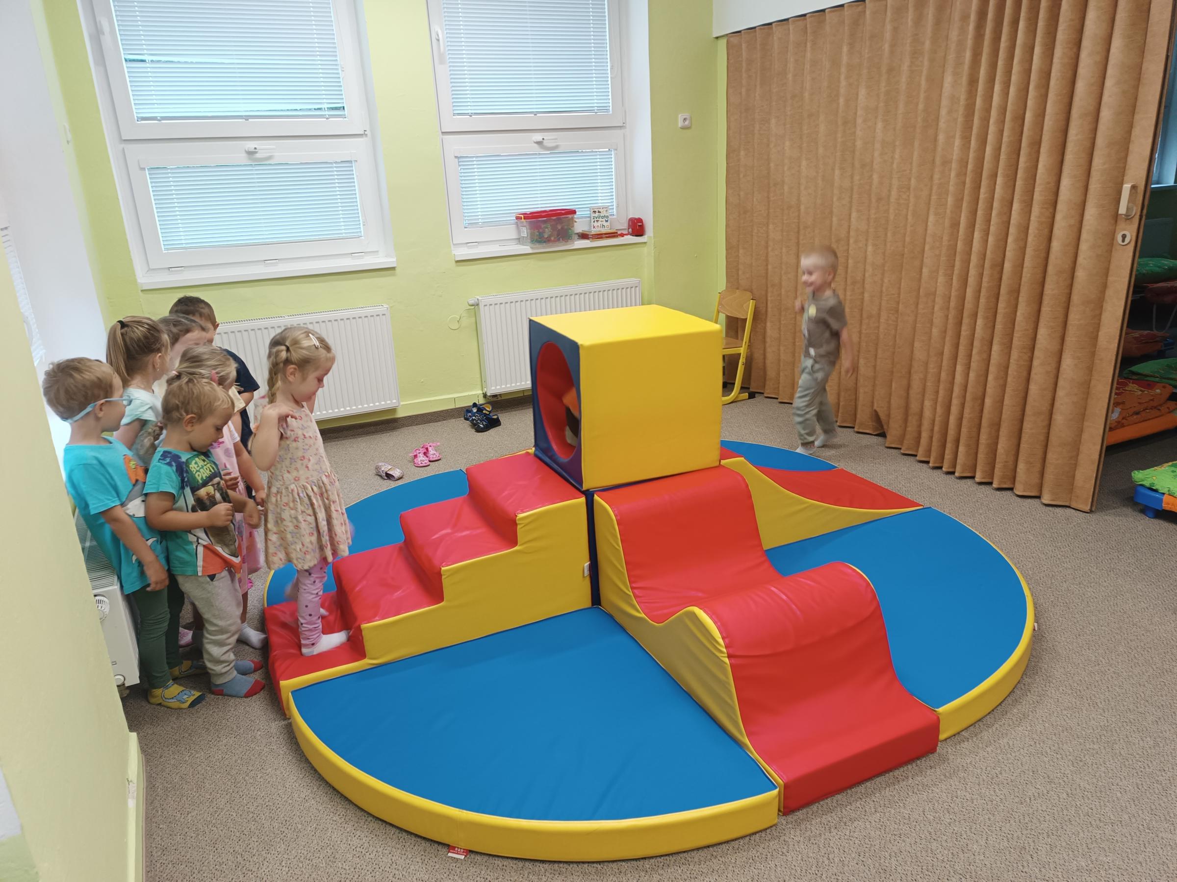 Děti se seznamovaly s novými učiteli, asistentkami a novými kamarády. Pro nejmenší Myšky se jednalo o adaptaci na školku. Během prvního adaptačního týdne si postupně zvykaly na nové prostředí i nové děti z ostatních tříd. Jednotlivé třídy chodily na průzkum po celé školce, navštívily paní kuchařky a paní uklízečky. Děti předvedly, co se již stačily naučit a byly odměněny potleskem. Také jsme chodili do okolí školky a hledali známá i neznámá místa. Nejmenší děti se učily chodit ve dvojicích s dráčkem. Na školní zahradě si děti hezky pohrály. Všude se učily zvládat naše bezpečnostní pravidla. Nový školní rok nám začal a všichni se těšíme na nové zážitky strávené ve školce i mimo ni.