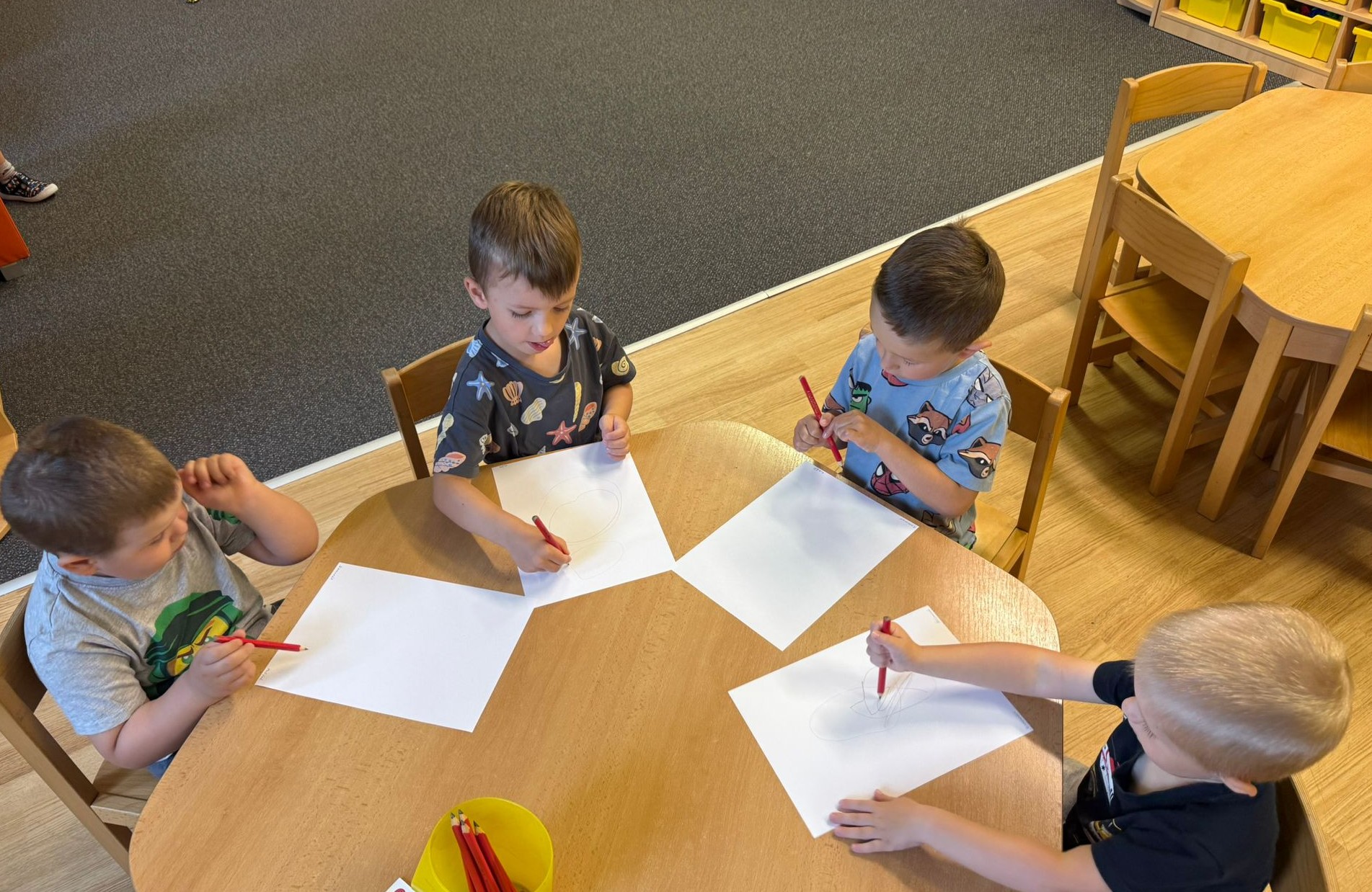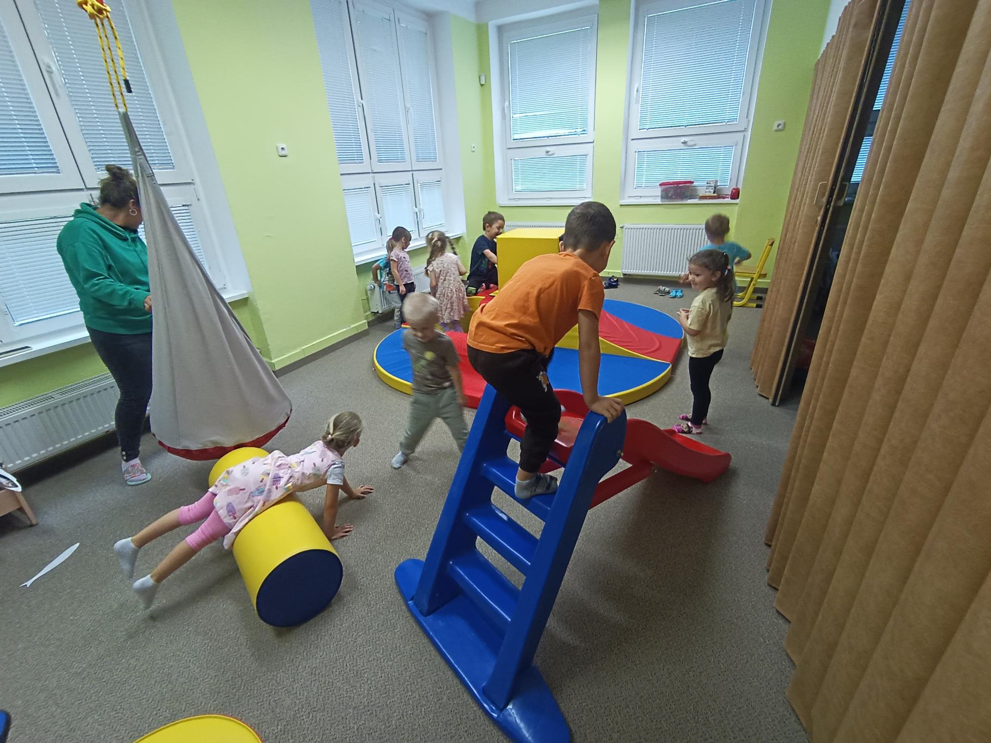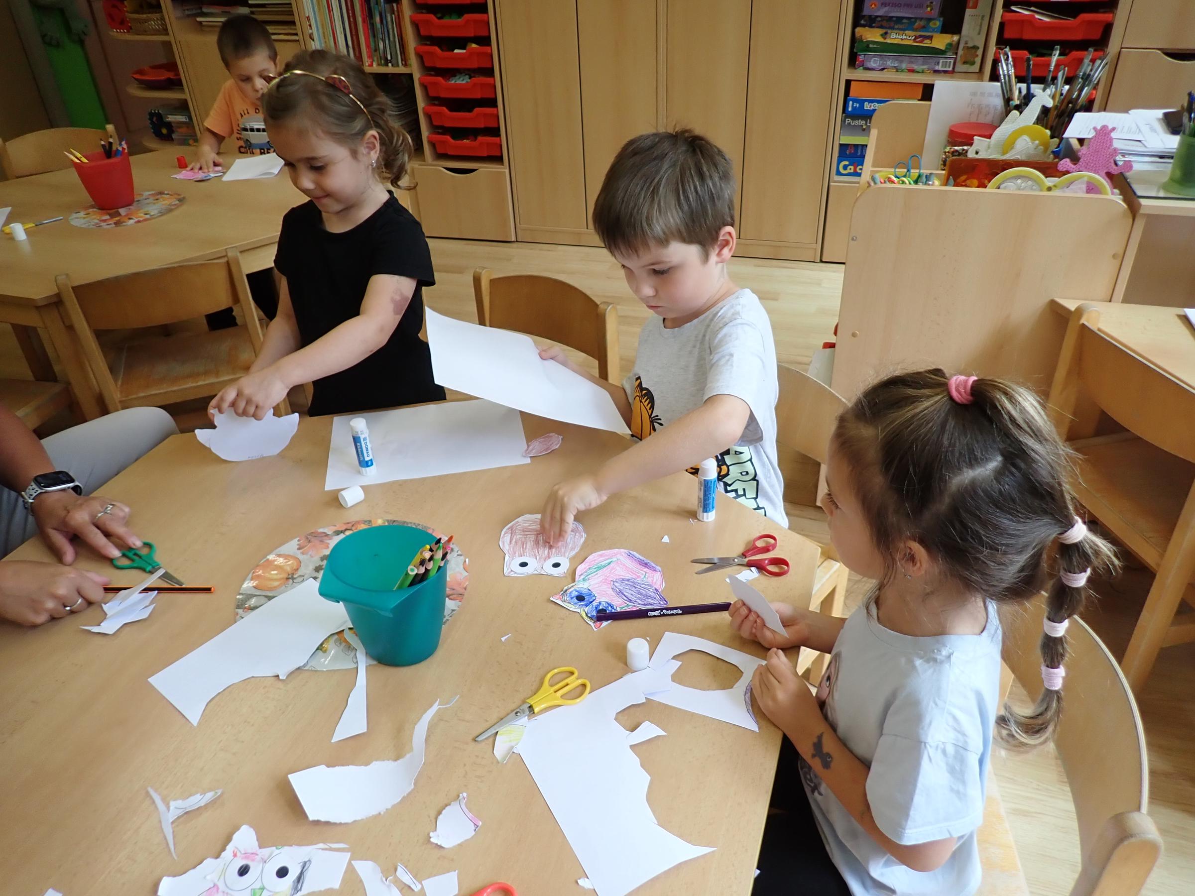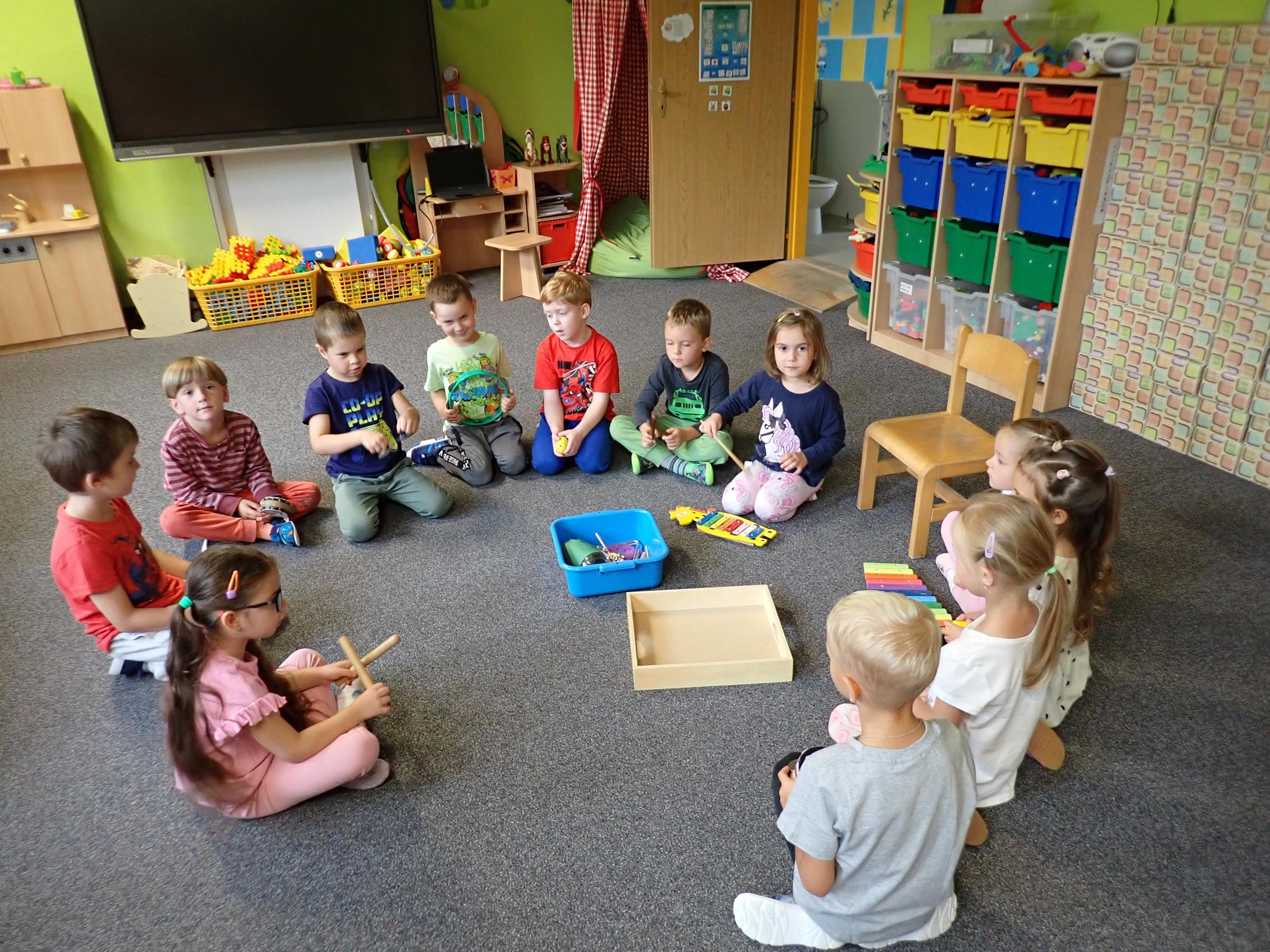 Děti se seznamovaly s novými učiteli, asistentkami a novými kamarády. Pro nejmenší Myšky se jednalo o adaptaci na školku. Během prvního adaptačního týdne si postupně zvykaly na nové prostředí i nové děti z ostatních tříd. Jednotlivé třídy chodily na průzkum po celé školce, navštívily paní kuchařky a paní uklízečky. Děti předvedly, co se již stačily naučit a byly odměněny potleskem. Také jsme chodili do okolí školky a hledali známá i neznámá místa. Nejmenší děti se učily chodit ve dvojicích s dráčkem. Na školní zahradě si děti hezky pohrály. Všude se učily zvládat naše bezpečnostní pravidla. Nový školní rok nám začal a všichni se těšíme na nové zážitky strávené ve školce i mimo ni.
