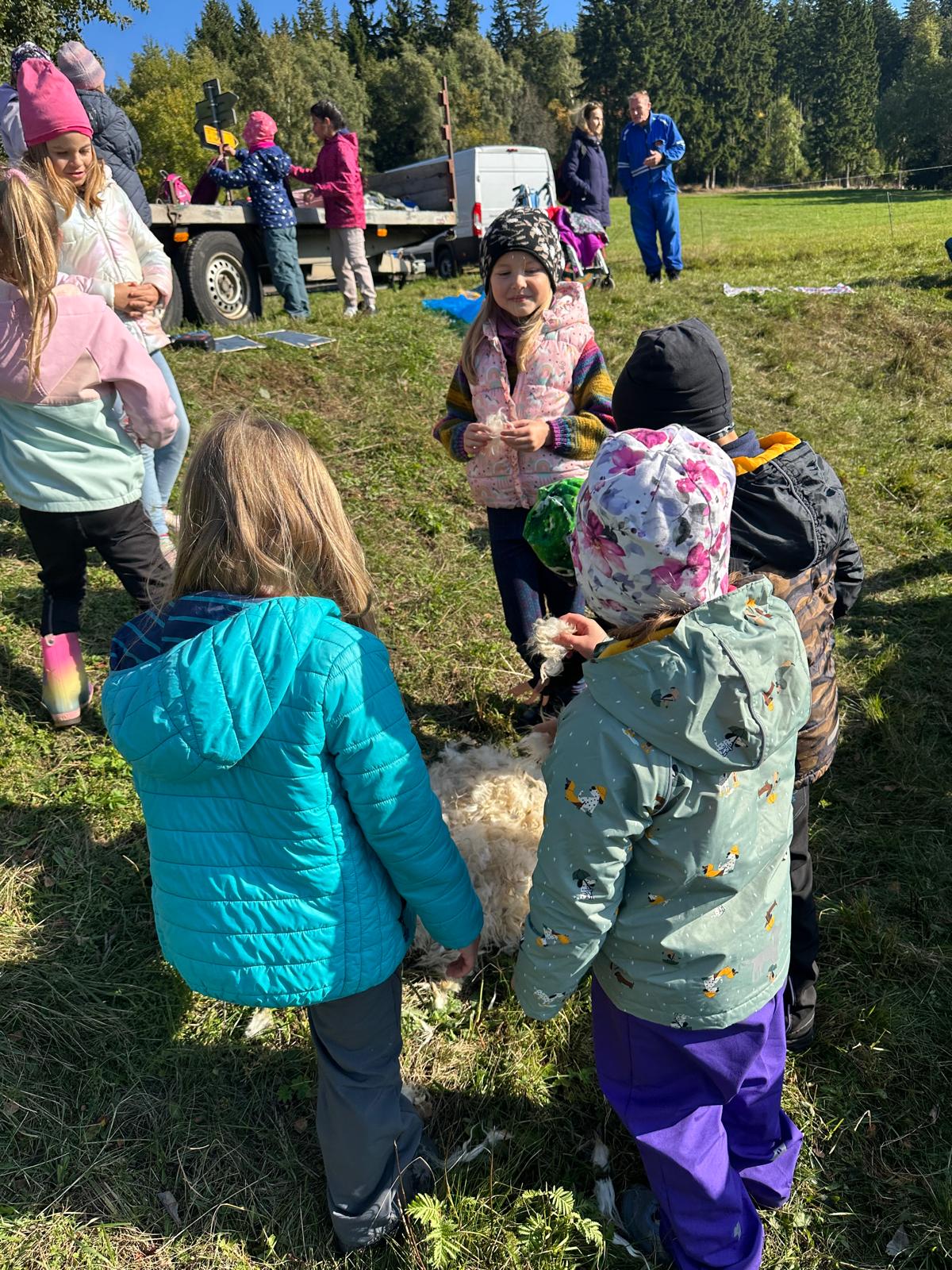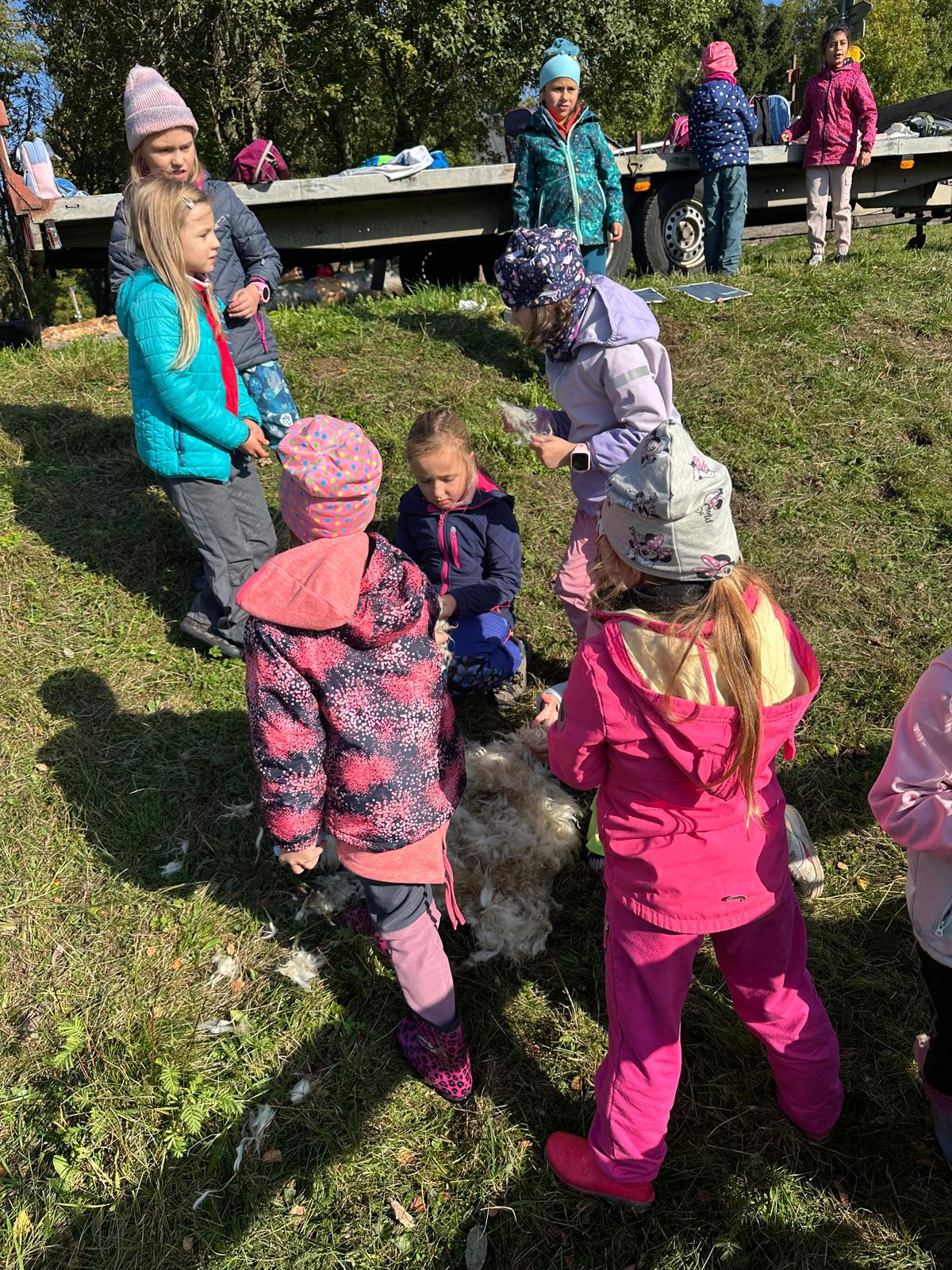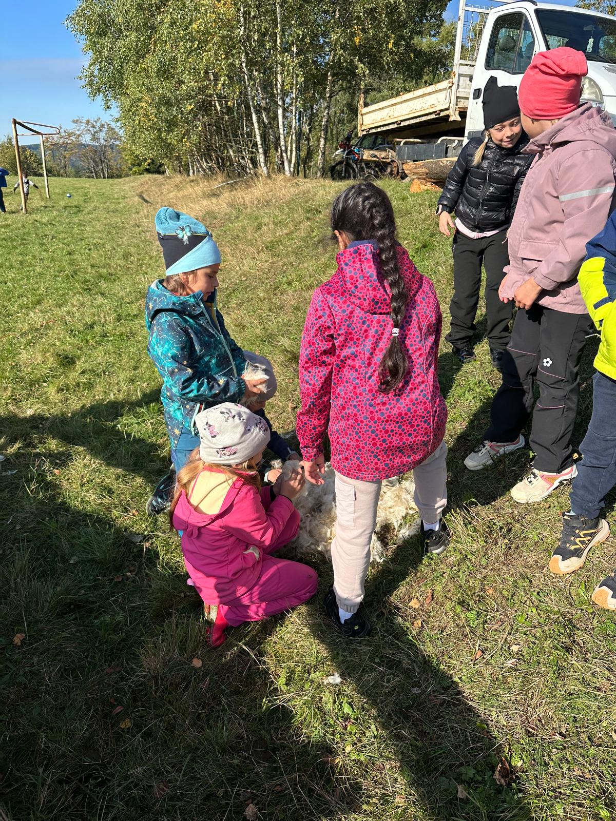 Dne 29.9. vyrazily třídy 2. A a 2. B na Suchou, kde měly díky rodičům jedné naší žákyně, jimž ovčí stádo patří, vidět práci dvou skvělých střihačů ovcí. A že bylo na co se dívat, protože jeden z nich je dokonce několikanásobný mistr republiky v této disciplíně a jednu ovečku zvládne ostříhat v průměru za neuvěřitelných 90 sekund. Kromě tohoto nevšedního zážitku jsme se dozvěděli spoustu zajímavostí ze života a chovu ovcí. Asi nejvíc děti překvapila informace, že beran vždy nemusí mít rohy ( zrovna jejich beran je neměl) a může je mít ovečka. Potom už jsme obdivovali zručnost střihačů a v pauze, kdy střihači zaslouženě odpočívali, si děti stihly zahrát fotbal, postavit domečky ze dřeva nebo se jen mazlily s ovečkami. Celé dopoledne se zkrátka povedlo na jedničku s hvězdičkou a my jsme odjížděli plni nezapomenutelných dojmů. Mockrát děkujeme rodičům Evičky, že nám to umožnili a její babičce za vynikající pohoštění.