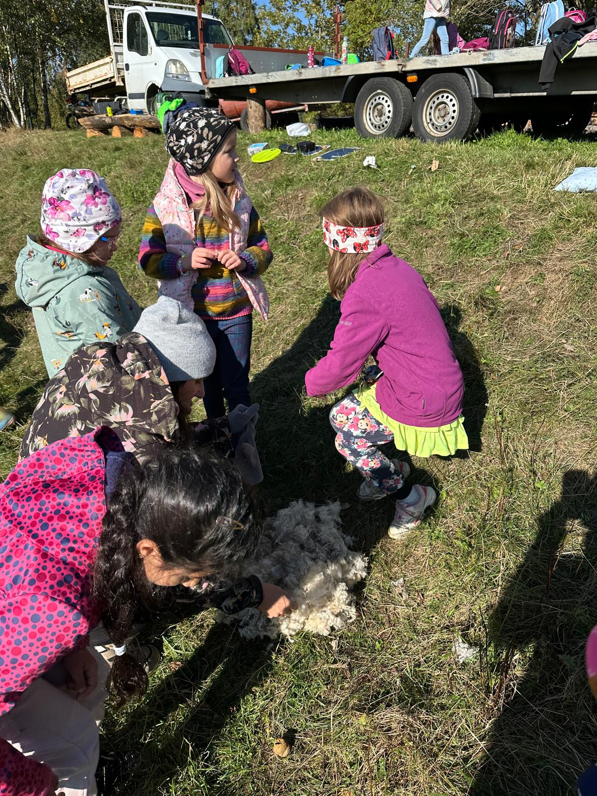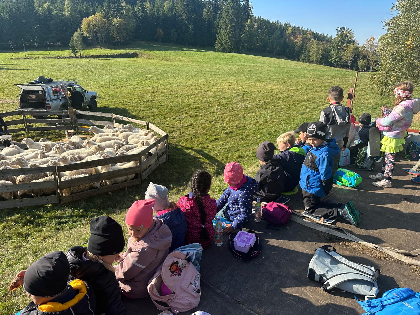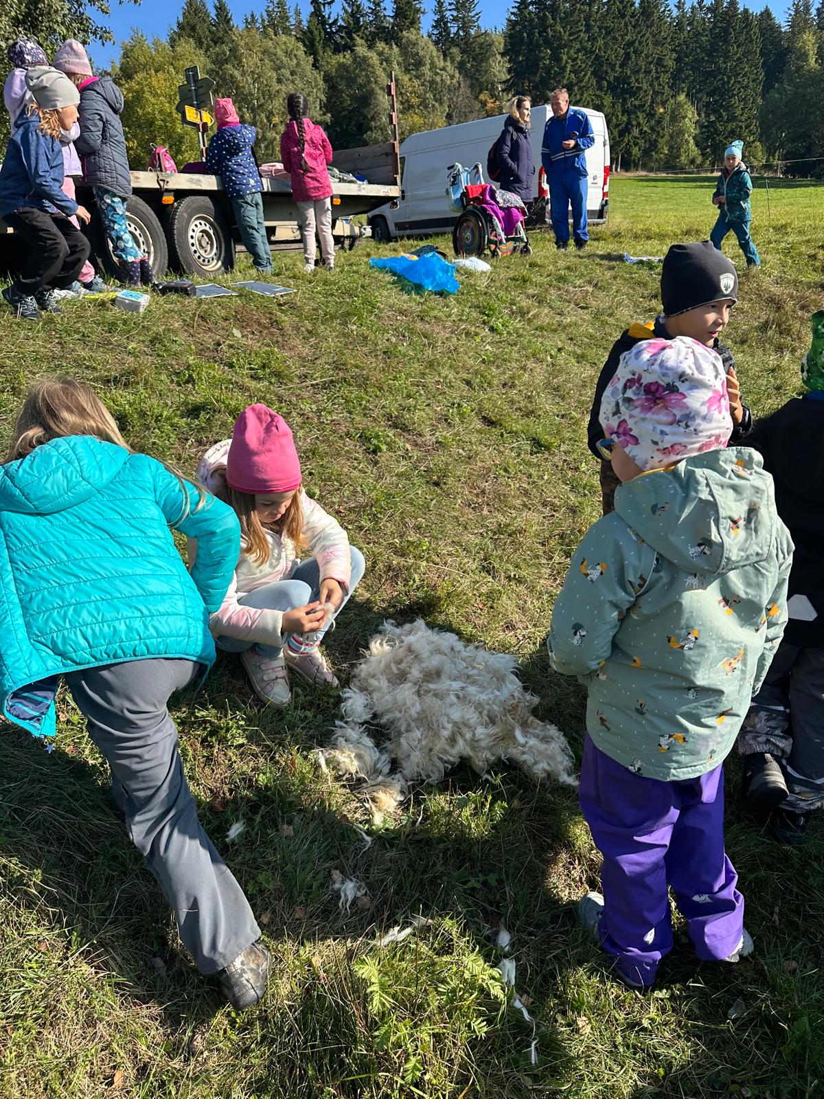 Dne 29.9. vyrazily třídy 2. A a 2. B na Suchou, kde měly díky rodičům jedné naší žákyně, jimž ovčí stádo patří, vidět práci dvou skvělých střihačů ovcí. A že bylo na co se dívat, protože jeden z nich je dokonce několikanásobný mistr republiky v této disciplíně a jednu ovečku zvládne ostříhat v průměru za neuvěřitelných 90 sekund. Kromě tohoto nevšedního zážitku jsme se dozvěděli spoustu zajímavostí ze života a chovu ovcí. Asi nejvíc děti překvapila informace, že beran vždy nemusí mít rohy ( zrovna jejich beran je neměl) a může je mít ovečka. Potom už jsme obdivovali zručnost střihačů a v pauze, kdy střihači zaslouženě odpočívali, si děti stihly zahrát fotbal, postavit domečky ze dřeva nebo se jen mazlily s ovečkami. Celé dopoledne se zkrátka povedlo na jedničku s hvězdičkou a my jsme odjížděli plni nezapomenutelných dojmů. Mockrát děkujeme rodičům Evičky, že nám to umožnili a její babičce za vynikající pohoštění.